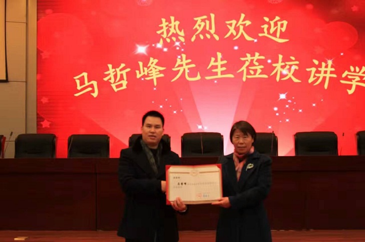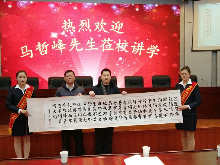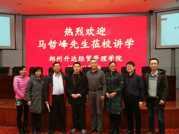 报告会前,经理郭爱先教授首先给马哲峰老师颁发郑州升达经贸tyc522cc太阳成集团客座教授聘书,张金安副经理向马哲峰老师赠送了学院纪念品。