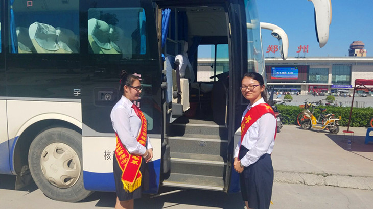 早晨6:10全体迎新人员在思源会馆大门集合,跟随校车前往火车站进行迎新工作。每辆校车有一名迎新大使,负责维持车上的秩序、升达情况的讲解以及新生疑问解答。迎新大使以通俗易懂、诙谐幽默的语言让新生和家长在轻松的氛围中对学校的基本概况有了一定的了解。迎新大使热情的服务态度和有问必答的工作作风赢得了家长和员工们的一致好评!