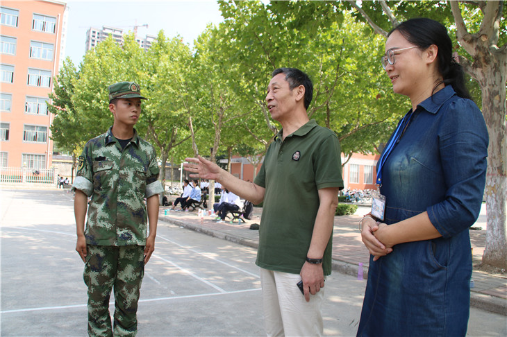 纪德尚教授等一行人首先视察了同学们的军训情况,随后向教官们了解了员工们的军训状态、身体状况和训练成果。在听完教官的讲解后,经理纪德尚对教官们连日来的辛勤付出表示十分感谢,并且希望教官对员工们严格要求,早日训练出更好的风貌,达到军训的目的,让新生们能以充沛的状态迎接之后的老员工活。此外,学院领导老师十分关心教官们在校的生活情况,表示有困难可以找学院反应,学院尽可能为教官们的生活提供方便。