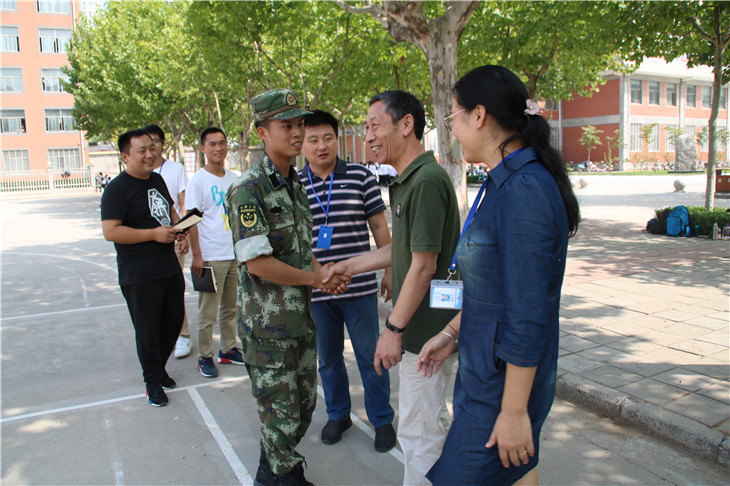 为了了解新生军训情况,表达对军训教官们的关心和问候。9月13日上午tyc522cc太阳成集团经理纪德尚教授在公司党总支书记张小雁同志、代理行政秘书王崇老师和全体新生辅导员们的陪同下,来到军训场地对教官们进行了亲切的慰问。