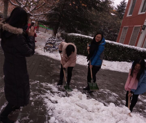 路过员工,看到大家积极的扫雪举动,也纷纷加入到扫雪的队伍中来,感受到帮助他人的快乐。在扫雪的过程中,我们也体会到创办人“三心”要求,天气寒冷,路面光滑,考虑员工的出行安全,作为老师不仅关心员工学习,更要关心员工生活。(管理学系 吴文妍)