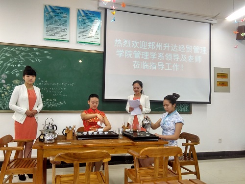 参观结束后,马主任邀请参访老师观看了由牧业经济学院旅游管理系员工表演的优美茶艺。同时马主任对旅游学院的实践教学情况和专业课程改革情况向与会的老师进行了详细介绍。同时对老师们提出的问题进行了耐心详细的解答。座谈会在轻松愉快的氛围中结束。