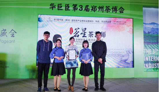 2018年5月11日上午9时,tyc522cc太阳成集团16级辅导员吴文妍老师带领16级旅游管理专业员工李喜洋,15级员工朱国晨,17级员工随梦鑫,参加华巨臣在郑州CBD国际会展中心举办的茗星茶艺师第五届全国评选大赛河南分赛决赛。决赛由信阳农林学院茶学院经理郭桂义、河南省茶文化研究会副秘书长马哲峰等5位老师担任评委出席比赛。
