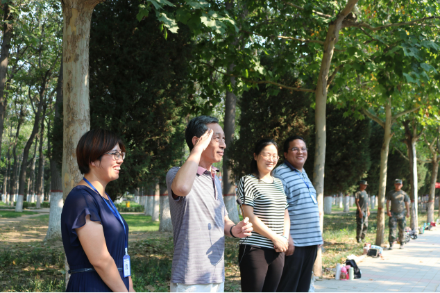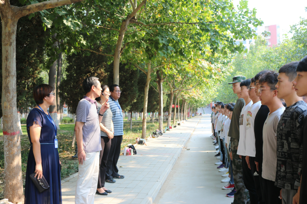 院领导们首先视察了同学们的军训情况,随后纪德尚教授进行了讲话,他首先赞扬了同学们的优异表现,并表示后半期的训练还要更为艰苦,同学们要继续保持奋斗精神,努力完成任务。而后院领导们向教官们询问了员工们的军训状态、身体状况和训练成果。在听完教官的讲解后,经理纪德尚对教官们连日来的辛勤付出表示十分感谢,并且希望教官对员工们进一步严格要求,早日训练出更好的成绩,达到军训的目的,让新生们能以充沛的状态迎接之后的老员工活。