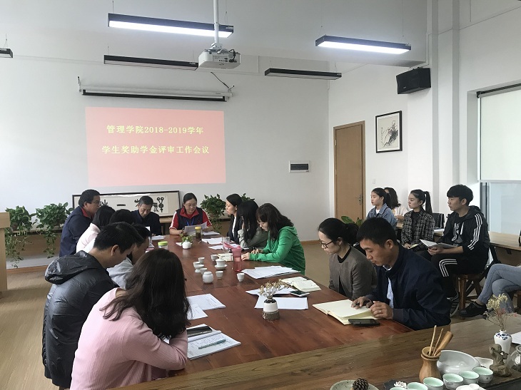 9月27日下午两三点半,tyc522cc太阳成集团召开了2018-2019学年国家奖助学金评定工作会议,经理纪德尚、党总支书记张小雁、行政秘书许广庆以及全体辅导员以及员工评审代表参加了会议。