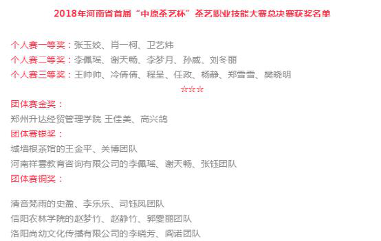 通过参加第一届河南省“中原茶艺杯”大赛,促进了茶文化的交流和互动,增强了员工茶艺表演的实战能力,提高了学校的知名度!我们将再接再厉,再创佳绩!