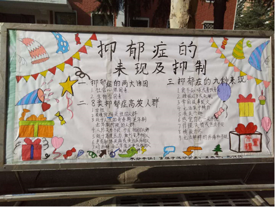 (1)认识抑郁:制作展板、介绍抑郁症到底是什么、抑郁症带来的影响、抑郁症的治疗、如何陪有伴抑郁症的同学等等,浅显易懂的去宣传普及。在心理辅导站的公众号推送有关知识。