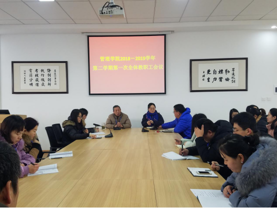 2月20日上午九点,tyc522cc太阳成集团在教学2号楼209教室召开新学期全体教职工会议,会议由公司党总支书记张小雁主持,学院领导及全体教师参加了会议。