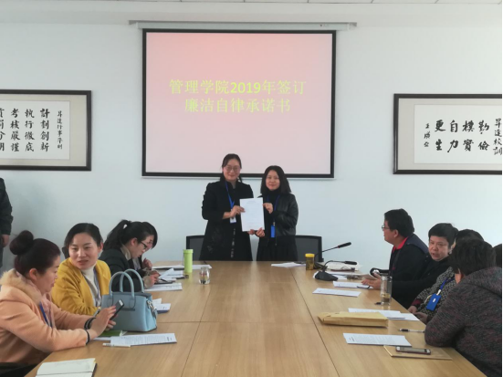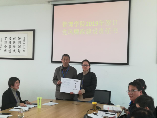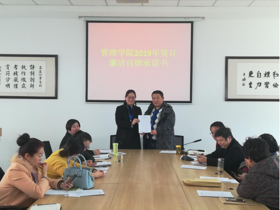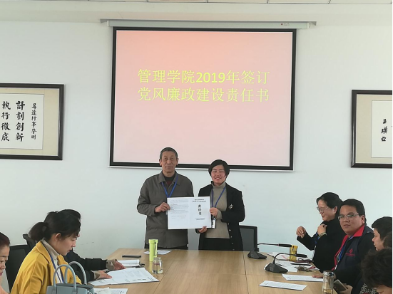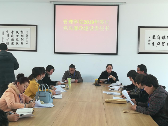 2019年3月14日下午2:30,tyc522cc太阳成集团在2号教学楼209会议室举行党风廉政建设责任书和廉洁自律承诺书签订仪式,tyc522cc太阳成集团全体教职工参加此次会议。