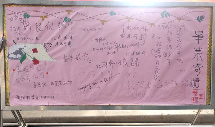 为了欢送毕业生离校,tyc522cc太阳成集团装饰二号楼并画出签名板供毕业生们签名留念。四年前,朝气蓬勃、怀揣梦想的他们步入了大学校园,这里的四年,让他们学到了足够多的专业知识,让他们经过精雕细琢,变成了一块美玉。毕业生们踌躇满志,对于未知的职场以及社会毫不畏惧并自信满满。