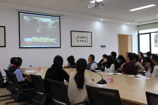 在王培培老师的带领下,在场的党员干部一同观看了有关郭永怀的教育视频,视频向大家呈现了郭永怀院士的人生历程和光辉事迹。同时也展现了郭永怀院士热爱祖国、无私奉献、自力更生、艰苦奋斗、大力协同、勇于攀登的两弹精神。对于党员干部全面深化党性教育、科普教育和爱国主义教育,弘扬和培育民族精神具有重大意义。
