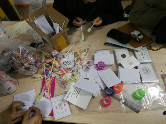 12月12日下午,心理辅导站联合团学心联部成员来到图书馆,他们带上精心制作的“加油卡”,“加油卡”写上满满的考研鼓励,粘上一个甜甜的棒棒糖,在图书馆中厅和自修室进行发放。成员们面带微笑将贺卡发到学长学姐的手上,不忘说一句:你们要加油!