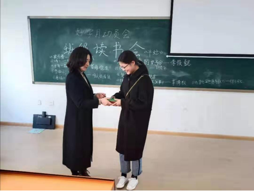 活动最后,由班级同学与辅导员共同挑选推荐书目的三名优秀同学,分别是19旅本一班赵月、19工本一班金永辉,19工本二班唐占江;由辅导员送上小礼物。此次活动激发了同学们的读书的热情,后续会相继开展类似活动。