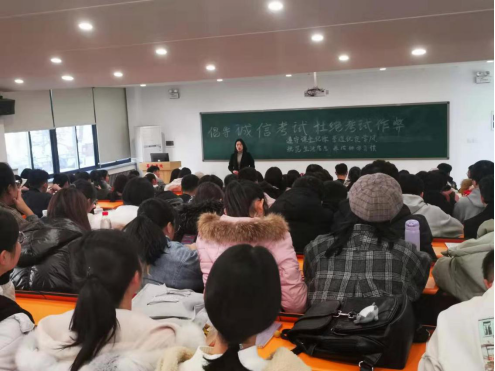 此次班会分两个环节进行,第一个环节是“好学月动员会”,由辅导员祖老师召开,向同学们讲解《郑州升达经贸tyc522cc太阳成集团课堂管理规定》,严肃上课纪律;加强诚信教育,严肃考风考纪;预防网络诈骗等内容。