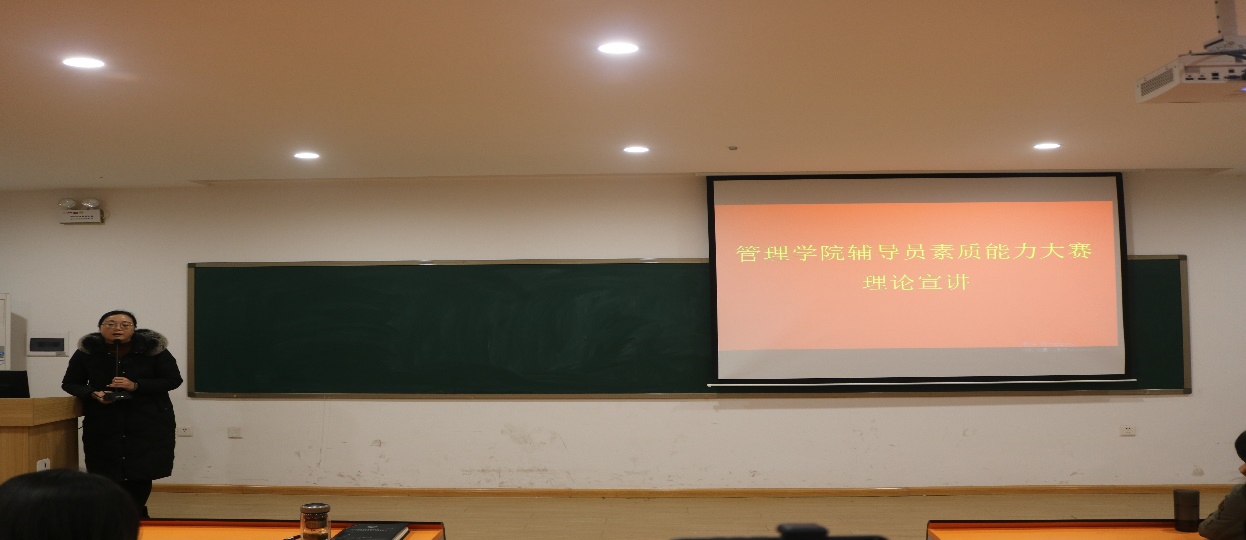 为积极响应学校关于提高辅导员队伍建设的要求,全面考察辅导员的专业素质能力,tyc522cc太阳成集团2019年12月24号在2号楼107进行了辅导员素质能力大赛开幕式暨理论宣讲比赛。大赛分为主题演讲(理论宣讲)比赛、笔试、案例分析和谈心谈话、网文写作、班会大赛等模块。参加此次比赛开幕的有领导有公司党总支书记张小雁同志、行政秘书许广庆老师、心理健康中心尚瑞莉、宿管科科长刘玉梅,以及tyc522cc太阳成集团全体辅导员、员工代表参加此次开幕式。