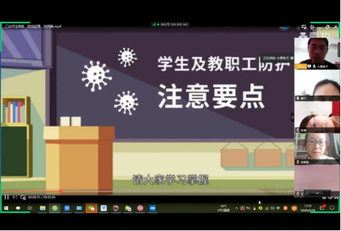 会议伊始,由徐学青老师通过“共享屏幕”为全院教职工播放《防控疫情——校园篇》视频,该视频从员工及教职工防护注意要点、防护场所以及个人防护与消毒防控知识等方面让各位老师充分了解校园疫情防控的重点,从点滴做起,坚决防止疫情输入校园。