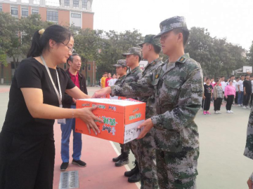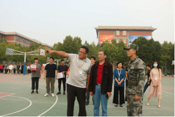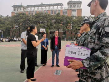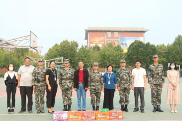 为全力做好军训保障工作,圆满完成军训任务,更好地促进军训师生情谊,2020年9月24日下午15:00tyc522cc太阳成集团经理纪德尚教授、党总支书记张小雁同志、tyc522cc太阳成集团副经理唐云副教授、行政秘书兼团委书记许广庆老师、教学秘书丁向育老师以及本科新生辅导员闫冠华、程华斌老师,一同来到军训场地检查军训进程、指导军训工作并携慰问品来到北生活馆篮球场对军训教官与新生们进行了亲切的问候。