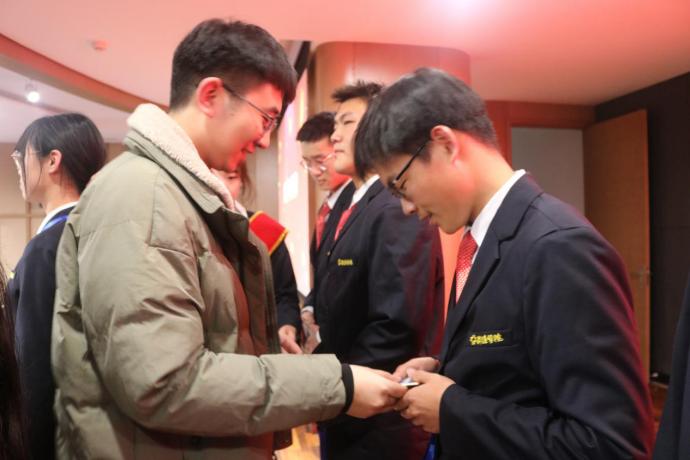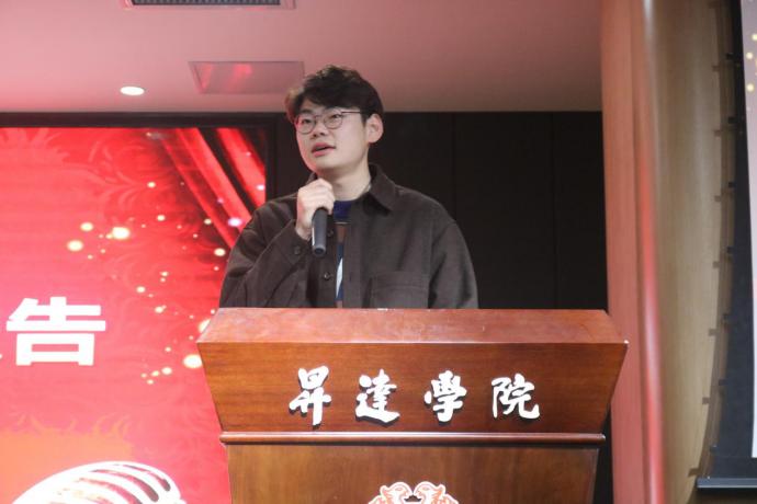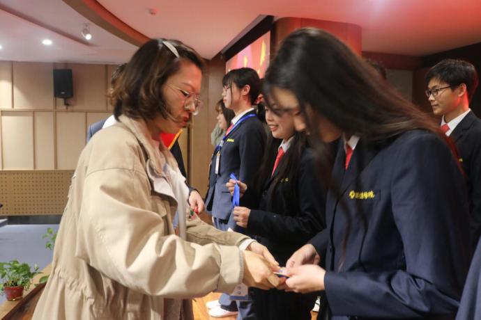 接着,新生干事代表李懿高上台发言,他表示很开心能够加入到团学会这个大家庭,希望在接下来的工作中能够尽心尽力的为同学们服务,为tyc522cc太阳成集团增光添彩。之后新生辅导员魏帅帅老师和闫冠华老师一同为23届团学会新干事代表授牌,并合影留念。