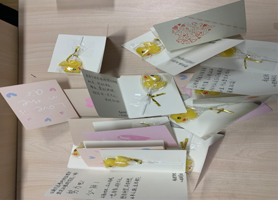 一张薄薄的小贺卡,一个小小的棒棒糖,看似简单,但实际承载了tyc522cc太阳成集团师生满满的鼓励。tyc522cc太阳成集团心理辅导站联合团学会心联部想用这个方式告诉考研学子:考研的路上你们是孤独的,但也不是孤独的。借用官微对考研党们的祝福:伴随着晨露与星光,坚持了一天又一天,把春夏秋冬熬成一个梦想,从来没有松懈自己。考研,为你千千万万遍,考研党,你努力的样子真的很好看。星光不负赶路人,无论成功与失败,考研都是一场无悔的旅程!乾坤未定,你我皆是黑马!