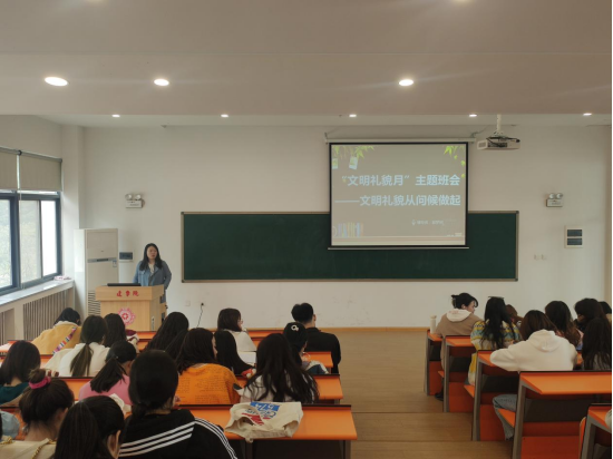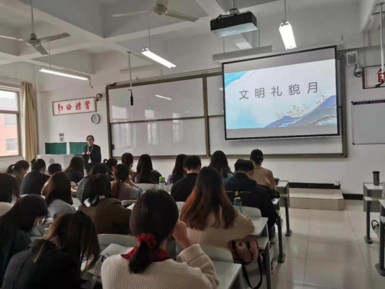 班会上,辅导员老师要求同学们,上课前向任课老师问好,下课时向老师说再见;校园或其他校外场所,向老师问好;出入老师办公场所向老师问好、道谢;同学之间相互问好。同时讲述了在校老员工的礼貌礼仪素质,营造和谐的校园人际交往环境的重要性。同学们通过讲述身边发生的故事,指出校园里不文明、不礼貌现象的形式,无形中对同学们自身行为进行约束,提升礼貌礼仪素质,营造和谐的校园人际交往环境。