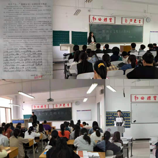 行政秘书许广庆在会议上强调了五一假期间的安全纪律,首先要求各辅导员具体从人身安全、财产安全、外出交通安全、网络安全等方面对同学们开展假期安全教育;其次要组织利用各班级员工干部积极关注员工情况,确保及时发现问题、解决问题;最后针对五一假期离校去向做出具体指示,对省内外员工流动做到详细备案上报。