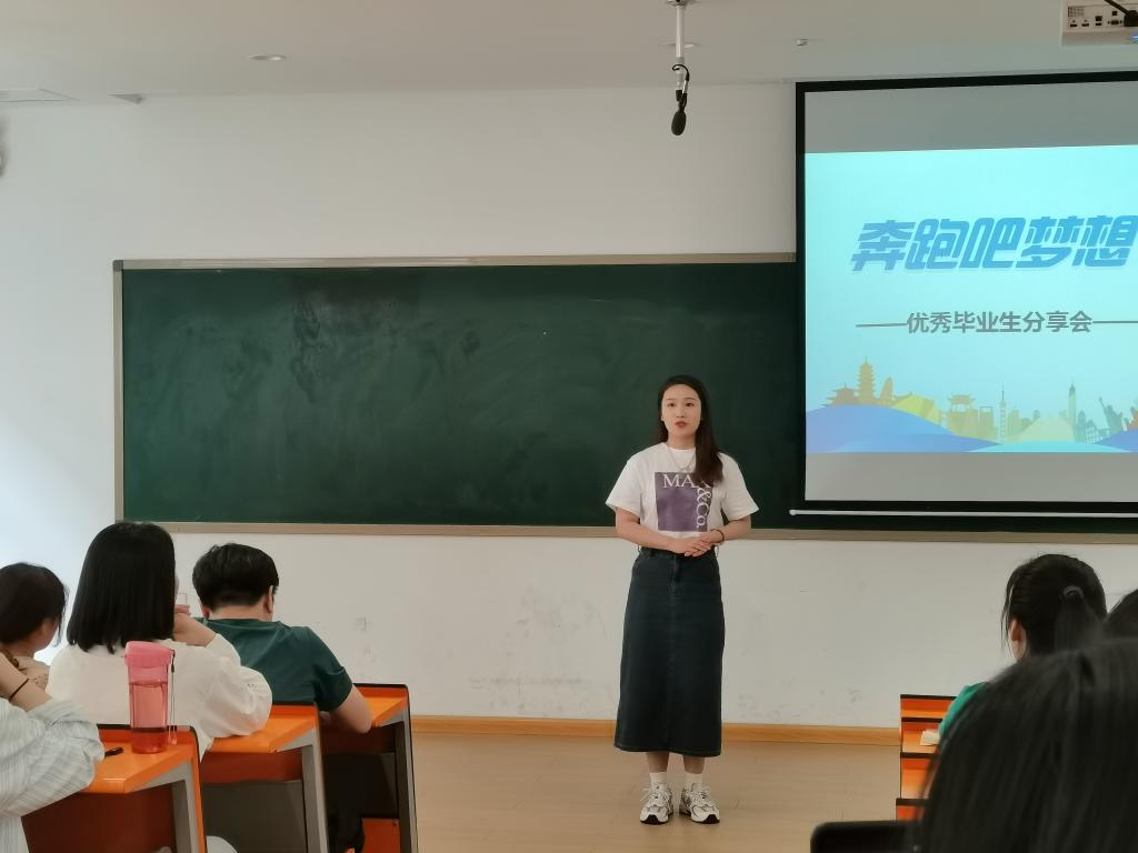 交流会结束之际,靳豆豆老师对四位毕业生的分享做了总结,希望同学们在追梦过程中,不管遇到什么样的困难,都要积极地面对它、不断地克服它,最后一定会取得一个满意的结果,同时,她还希望同学们在大学四年的时间里,努力掌握专业知识,提高专业技能,为自己美好的未来而努力。