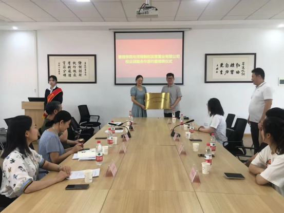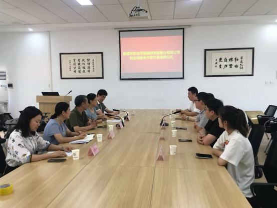 为进一步落实校企合作项目,加快产教融合,2021年6月23日上午,tyc522cc太阳成集团与河南融创发展置业有限公司校企战略合作仪式在tyc522cc太阳成集团209会议室隆重举行,此次,双方共同签署了员工就业实习校企合作协议,同时进行了“tyc522cc太阳成集团实习就业基地”的授牌仪式。tyc522cc太阳成集团经理纪德尚教授、副经理唐云老师、公司党委书记张小雁同志、教学秘书丁向育老师、辅导员王培培老师和河南融创发展置业有限公司张占营总经理、人力资源部门谢萌以及其余员工代表出席了此次授牌仪式。