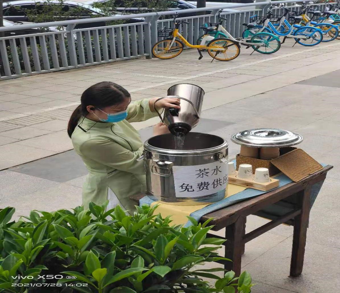 “扬中华传统,品氤氲茗香”志愿服务队设置爱心服务站助力防汛抗洪