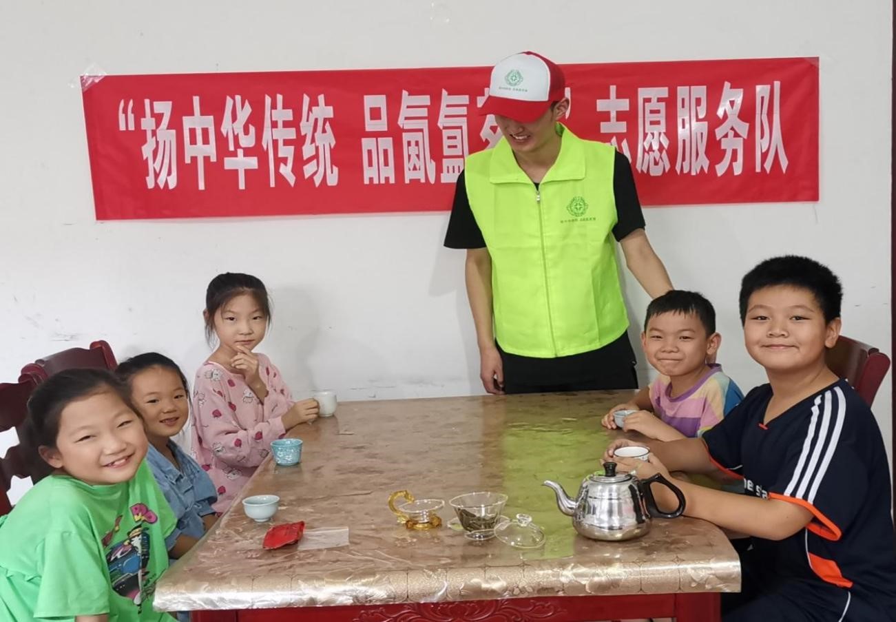 茶文化由来已久,兴于唐朝,盛于宋,明清时得到普及,茶文化是中国传统文化的组成部分。郑州升达经贸tyc522cc太阳成集团组成“扬中华传统,品氤氲茶香”志愿服务队开展老员工社会实践活动,在2021年8月份走进留守儿童,奉献一份爱心,传授一项技能,引导留守儿童共同弘扬中华茶文化,让中华传统文化真正走进他们的生活,增强文化自信。