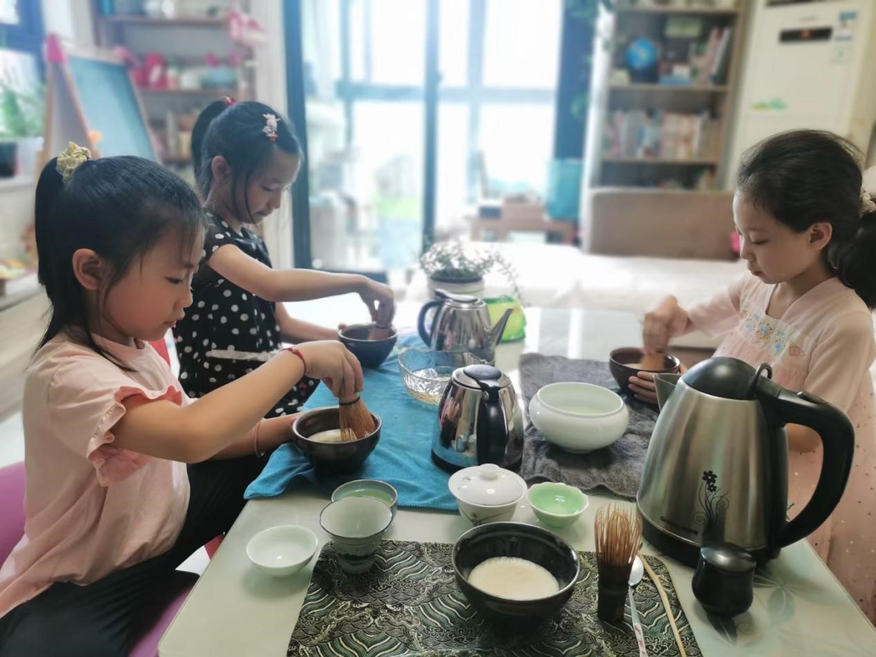 活动还未开始,小朋友们就对茶桌上摆放的茶盘茶具表现出了浓厚的兴趣,并十分认真地听讲,跟志愿者的互动交流,回答非常积极。实践中,志愿者们向小朋友们讲授了茶文化的一些基本知识,让他们了解茶叶的品种、冲泡的水温等;随后,志愿者让小朋友们自己动手泡茶,手把手教授他们泡茶的手法,提升了他们的体验感和兴趣;最后,志愿者和小朋友一起品茗自己所泡的茶汤,交流心得体会,了解小朋友们的家庭具体情况,学习状况,家庭困难,志愿者们尽所能为小朋友们提供心理疏导,帮助解决实际困难。