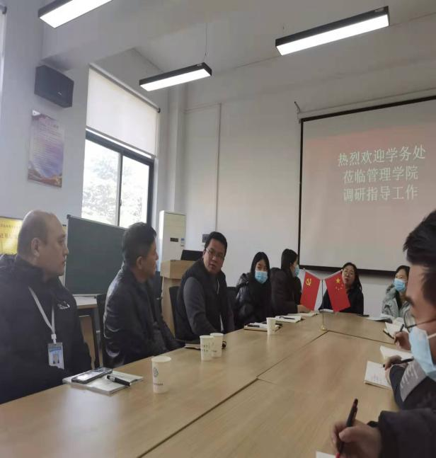 12月6日上午,学务处处长张红阳、科长孙鹏及科长张灏到公司调研指导工作,行政秘书许广庆及全体辅导员参与会议。