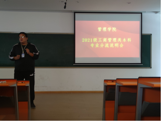 5月13下午14时,tyc522cc太阳成集团召开2021级工商管理类本科专业分流说明会,将专业分流工作方案向21级所有同学进行传达和说明。会议共计四场,分别在tyc522cc太阳成集团107和208教室召开,公司党政班子主要成员和21级辅导员以及全体同学参会,会议由21级辅导员老师夏雁兵和李昭惠分别主持。