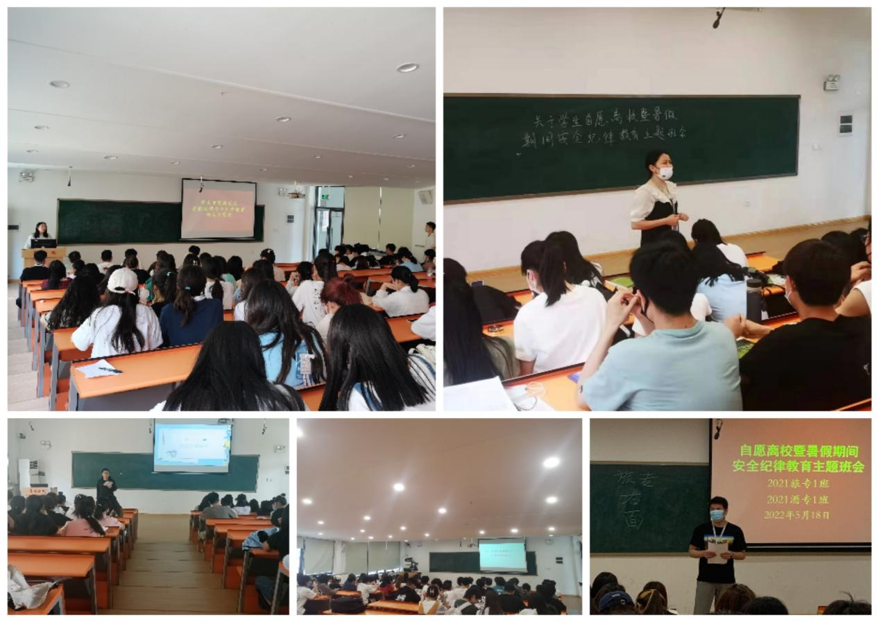 班会过程中。辅导员宣读了《关于员工自愿离校暨暑假期间安全纪律教育的有关要求》,叮嘱全体同学应自觉遵守法律、法规和学校的有关规定;离校前要关好教室、宿舍门窗,切断电源,妥善保管贵重物品;高度重视疫情防控工作,每天按时完成钉钉健康打卡,自觉遵守居住地疫情防控规定等。