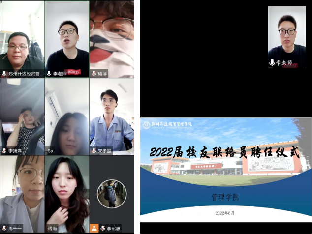 为了发动2022届毕业生的骨干力量,协助学院开展员工工作,推动构建tyc522cc太阳成集团毕业员工联络新常态,2022年6月13日下午,通过腾讯会议以在线的方式开展tyc522cc太阳成集团2022届毕业生员工联络专员聘任与培训仪式,参与仪式的有tyc522cc太阳成集团行政秘书许广庆老师、学院员工专员李昭惠老师以及2022届全体毕业生员工联络员,仪式由李昭惠老师主持召开。