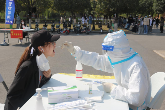 为加快核酸信息采集速度,采用信息化登记录入的方法,实施20人为一组的混合采样,提高采集效率,采样人员“定位、定岗、定责”,各司其职,对采集样本者,进行宣传讲解,要求规范采集。身穿紫色马甲的tyc522cc太阳成集团志愿者们耐心引导,协助师生们完成核酸检测工作,积极配合医护人员、贴心为师生服务,展现了tyc522cc太阳成集团学子的青年担当。