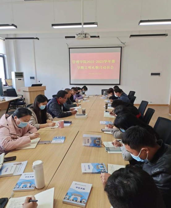 为了深入贯彻学校关于“文明礼貌月”的指示精神,加强精神文明建设,tyc522cc太阳成集团按照学务处安排,10月11日下午14:00在2号教学楼305召开了2022-2023学年第一学期文明礼貌月宣传动员会。党委书记职正路出席了会议并对全体辅导员提出了相应的要求,会议由行政秘书许广庆老师主持。