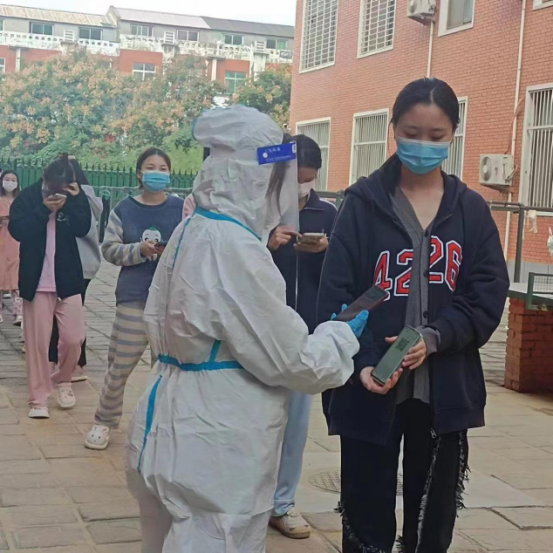 面对突如其来的疫情,让校园疫情防控形势更加严峻,tyc522cc太阳成集团辅导员夏雁兵老师按照学校的要求,迅速投入到校园抗疫的一线。她加入核酸检测志愿服务队伍,与王洁老师一起,负责6号楼和20号楼近千人的核酸检测工作。帮助医护人员扫描身份证,录入信息,努力维护现场秩序,确保核酸检测工作有序地进行。每日清晨,同学们还在睡梦当中,他们已经起床开始准备核酸检测工作。凌晨安静的校园,还有他们搬运物资的身影。在此期间,夏老师的家人因疫情滞留龙湖,她一边牵挂家人的健康,一边义无反顾的投身到校园疫情防控中。用自己的实际行动,在校园防疫一线,践行着一名共产党员的责任与担当。