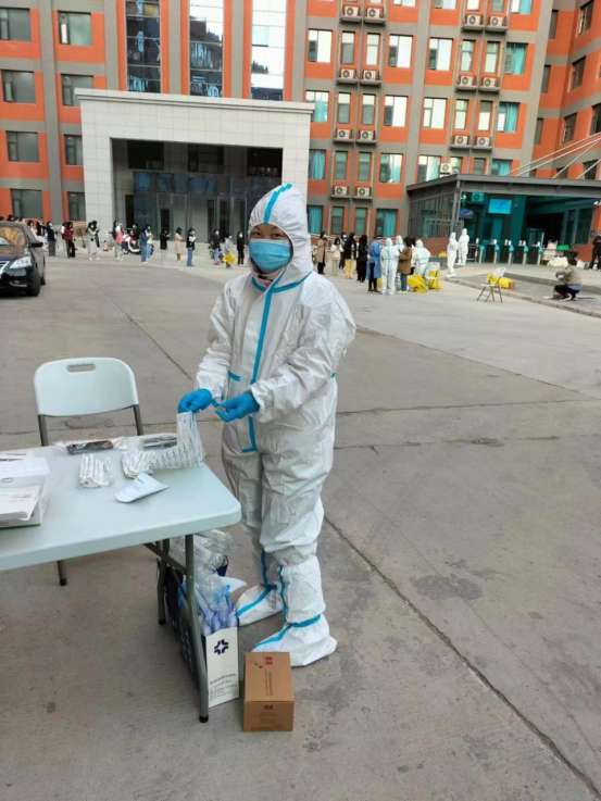 她主动服务,合理规划。确保员工学习生活基本正常后,与同事凌晨前往健康中心领取第二天的医疗物资,以保证第二天的员工核酸检测能够按计划进行。并根据院领导的指示精神,合理分配及协商好核酸检测安排及注意事项,逐步将防疫和服务工作从被动应对向主动安排、提前预备转变。