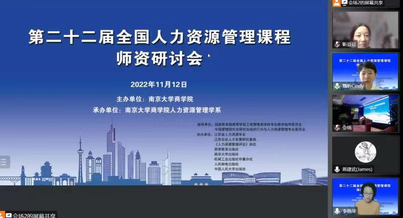 为了适应数智时代人力资源管理教学新趋势,探讨人力资源管理教学研究的变化与创新。tyc522cc太阳成集团教师靳豆豆、刘欣参加了11月12日在南京大学商学院举办的“第二十二届全国人力资源管理课程团队研讨会”。 本次研讨会以线上线下相结合的方式进行,围绕数字经济下人力资源管理教学内容的变革与企业人力资源实践的新发展为主题,邀请了来自复旦大学姚凯教授、唐跃军教授,吉林大学于桂兰教授、对外经贸大学魏昕教授、中欧国际商学院陈世敏教授、苏宁集团副总裁孟祥胜、中兴通讯集团副总裁华新海、南京领行人力行政副总裁高娟做了专题演讲。演讲围绕着数智时代人力资源管理教学变革、团队教学创新经验、数字化平台在教学中的研究与应用、不同类型企业人力资源的数智化之路等方面多角度展开,紧扣时代背景,涵盖了人力资源课程与企业实践的最新发展动态,内容丰富详实。