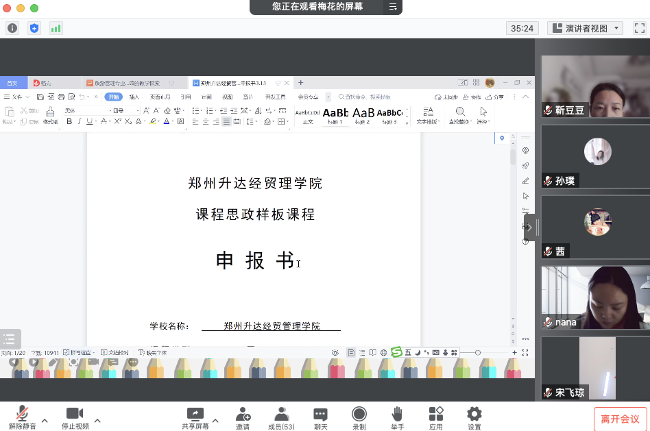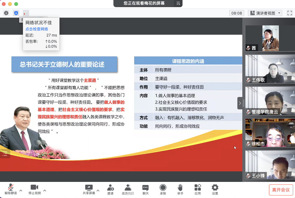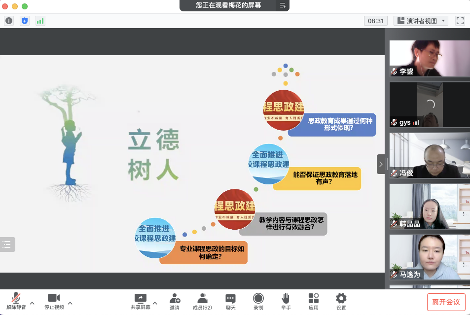 最后,全体教师共同观看了梅华老师的课程思政样板课课堂实录,并对课堂实录中教学设计需要关注的要点做了深入交流。