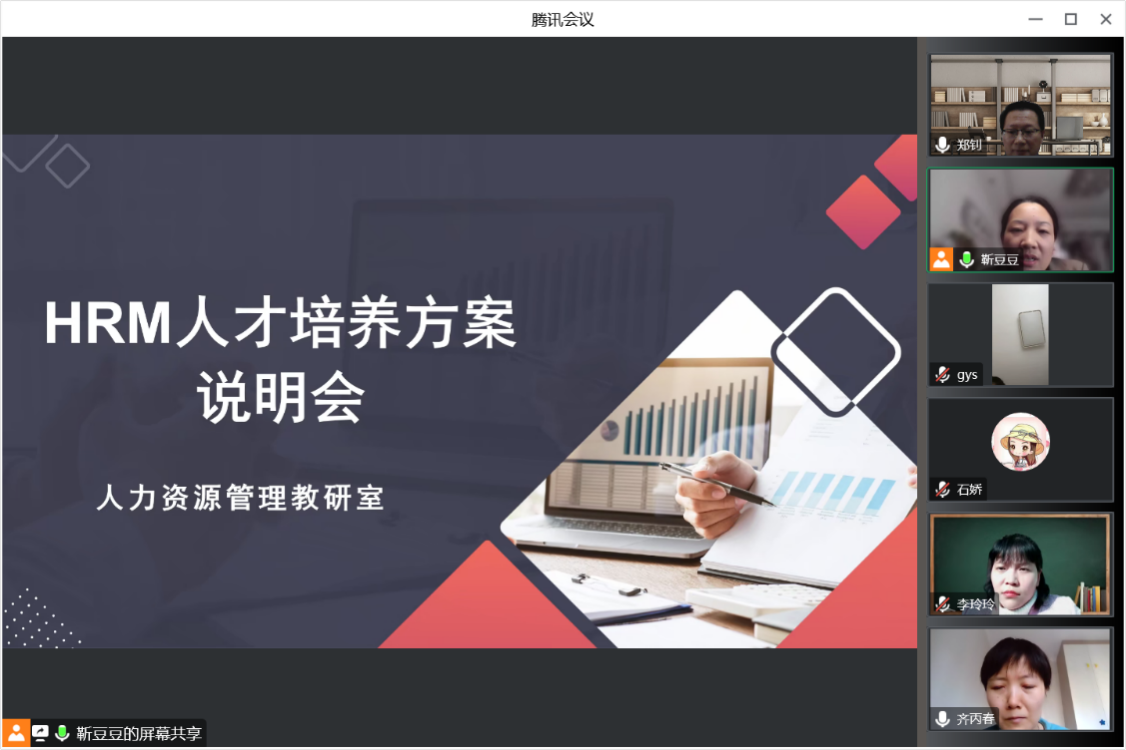 为了进一步提升人力资源管理专业人才培养质量,2022年11月24日人力资源管理教研室采用线上会议的形式召开了基于OBE理念的HRM人才培养方案说明会,全体教研室老师参加会议,会议由教研室主任靳豆豆老师主持。