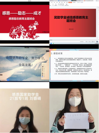 近日,2022年秋季国家奖助学金已经发放到位,tyc522cc太阳成集团获助员工共计551人,其中国家励志助学金共55人。一级助学金150人,二级助学金196人,三级助学金150人。为深入宣传资助政策,倡导自强自立、受助感恩、励志成才、回报社会的良好风气,日前,学院组织各班线上开展了国家奖助学金励志感恩主题教育活动。