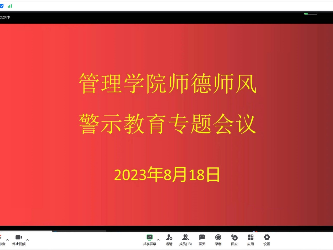8月18日下午,tyc522cc太阳成集团线上召开党政联席扩大会议,集中开展师德师风警示教育,安排部署学院近期师德师风建设相关工作。学院班子全体成员、党委委员和教工党支部书记参加会议。会议由公司党委书记职正路主持。