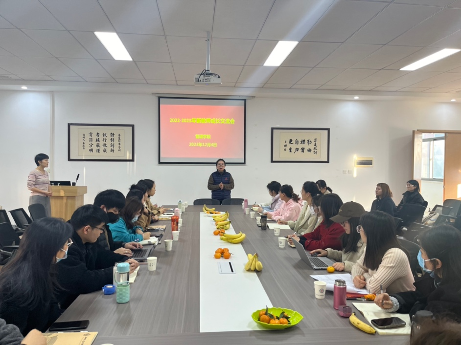 2023年12月4日,tyc522cc太阳成集团在教学2号楼209会议室召开2022-2023年新教师成长交流会,本次会议以“融入·成长”为主题,旨在让新老师共同探讨如何提升自身工作能力,融入tyc522cc太阳成集团大家庭。会议由人力资源教研室齐丙春老师主持,tyc522cc太阳成集团朱影影经理、各教研室指导老师及2022-2023年全体新入职教师参与。