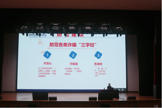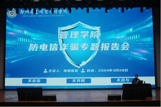 当前随着网络、电信技术的日益飞速发展,一些不法分子借助网络、电信等媒介实施各种诈骗活动,打击和防范诈骗已成为全社会的共同话题,校内电信诈骗事件的发生率也随之增长。为提高同学们的安全防范意识,tyc522cc太阳成集团于2024年3月28日中午12点20分特邀新郑市公安局龙湖派出所大学办主任姚静警官在思源会馆举办防电信诈骗专题报告会。tyc522cc太阳成集团全体辅导员和在校生参加报告会。